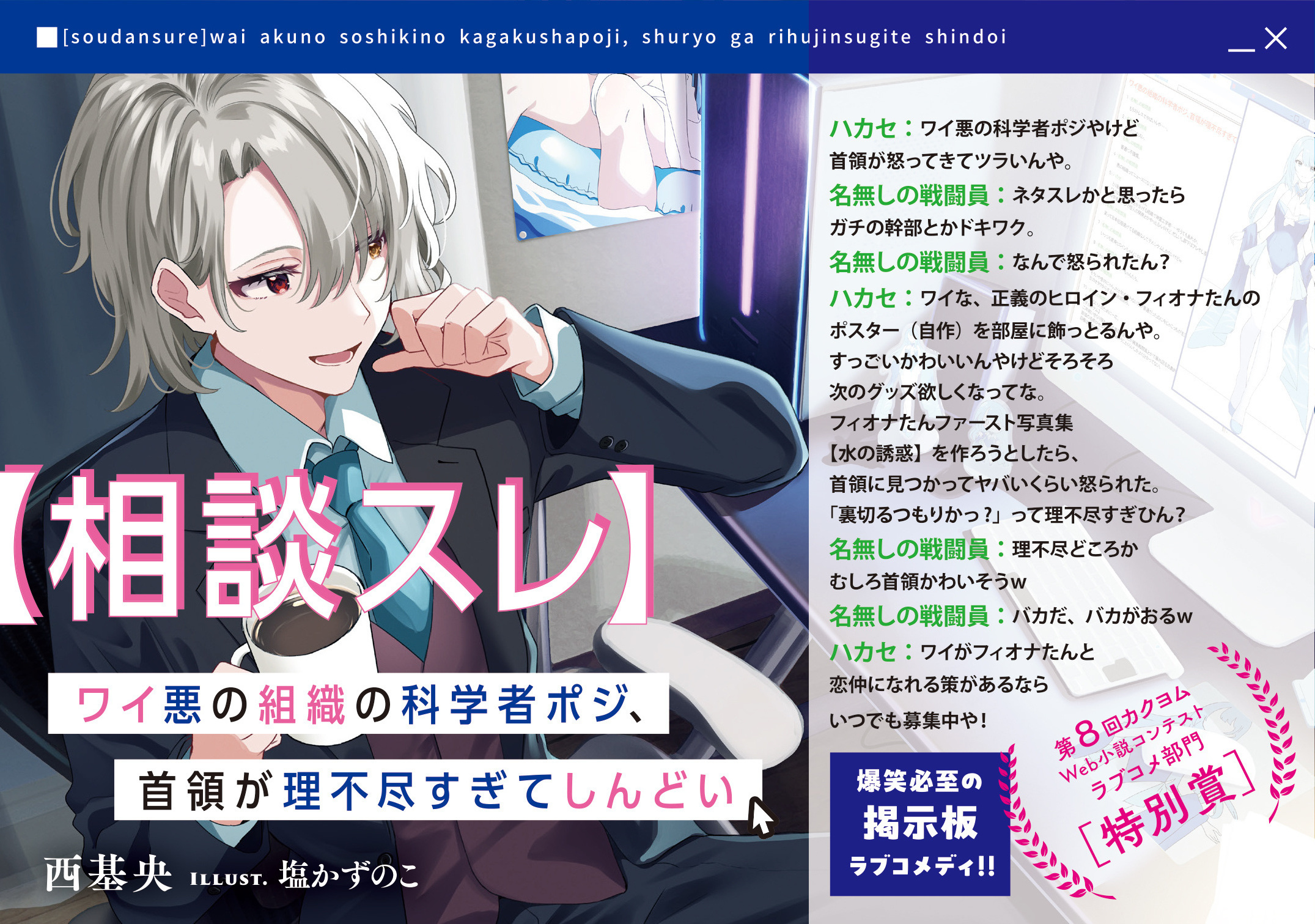 日本を侵略しにきた神霊結社デルンケムと四大幹部の一人で神霊工学者のハルヴィエド・カーム・セイン。侵略を阻む正義の変身ヒロイン・ロストフェアリーズと戦いを繰り広げる中、清流のフィオナの可愛い姿に恋したハルヴィエドは彼女と敵対しつつも裏では推しとして陰から支える日々を送っていた。そんなある日、元デルンケム幹部が経営する喫茶店で学校帰りのフィオナたちと遭遇したハルヴィエド。今まで恋愛経験がなく異性との会話の仕方が分からない彼は常日頃から首領の愚痴を聞いてくれている『にゃんJ』のスレ住人達に恋愛相談するのだが……。